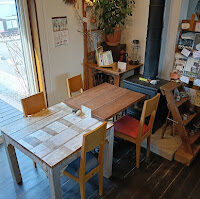12席程の小さなひっぽです。人気の小上がり席には絵本や木のオモチャが沢山並び、増え続けています。夏にはタープのテラス席、冬には薪ストーブの席を特設しています。「STUDIOひっぽ」の木工品やオーガニック食品の販売も好評です。木のぬくもりと珈琲の香りでくつろぎのひとときをお過ごし下さい。