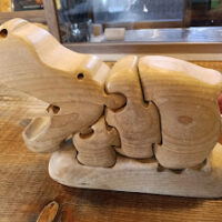 開店当初から本棚に置いてある「かばの組木パズル」。バラバラにするのは簡単なのですが、組み立てるのは意外に難しいのです。バラバラのままになっていることがよくあります。上からは入らなくて下からだとはまるように木を切っているの …