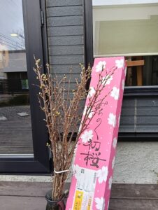 「みちのく初桜」という素敵な枝の桜をいただきました。立派な箱に入って、蕾がたくさんついた枝が7本です。室内に置いておくと正月には満開となり、その後は葉桜が楽しめるとのことです。目下、10~15輪くらいの花が咲き始めています。ソメイヨシノなのかよくわかりませんが楽しみです。続報がありそうですね。