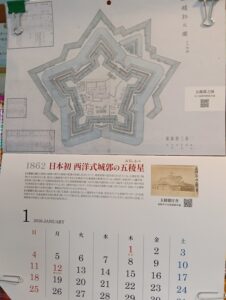 好きなもんでカレンダーは毎年買ってしまいます。メインのカレンダーは「スイミー」でお馴染みのレオ・レオニさんです。もう一つは、函館の古い地図や写真をカレンダーにしたものです。今月は当初の奉行所の写真と五稜郭の設計図のような図面です。歴史的な価値もありそうですね。