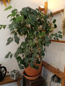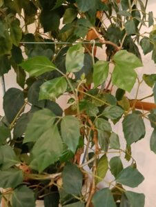 江別から一緒に引っ越してきたグレープアイビーですから、もう10年以上のお付き合いです。冬場はストーブの横という過酷な環境ですがどんどん新芽を出して命をつないでいます。枝先の葉が3枚になっていて合わさるとブドウの葉に見えることから、グレープアイビーと名付けられたようです。