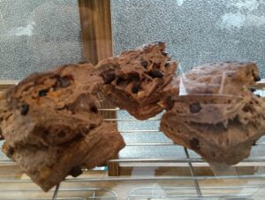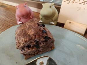 週替わりのスウィーツとは別に、気まぐれでスコーンを焼いています。トッピングはグランベリー、レモンピール、ミルクティ等々10種類以上になります。今日は生地にココアを入れてチョコチップを加えて焼きました。ありがとうございます!好評です。何をトッピングするか楽しみですね。
