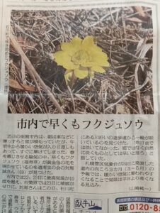 今週日中は氷点下にならない日が続きそうです。早くも福寿草が開花したと、函館新聞に載っていました。文字通りの春の便りでうれしくなりますね。場所は市内の石川町、そこに流れている石川という川の土手だそうです。石川があるから石川町なのでしょう、なるほどですねぇ。