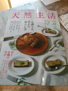 定期購読の天然生活の最新号が届きました。早くも12月号です。今月の特集は「心満ちる、豊かな暮らし方」。特集ページには心豊かになれる26の習慣、などというのがあり、思わず読みました。なるほどだったり、そうは無理でしょというのもありました。まぁ穏やかに暮らしましょう。