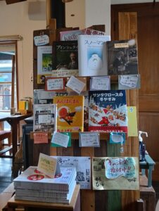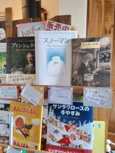 最近出版された絵本ということではなく、最近購入した絵本です。購入した絵本はみせさき本屋の棚に並べて飾ります。気に入ってお買い求めくださるのを待つ感じですが、売ることにこだわってはいません。いろいろな絵本を手にして接していただきたいな、という思いが強いですね。