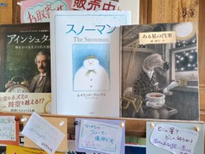 最近出版された絵本ということではなく、最近購入した絵本です。購入した絵本はみせさき本屋の棚に並べて飾ります。気に入ってお買い求めくださるのを待つ感じですが、売ることにこだわってはいません。いろいろな絵本を手にして接していただきたいな、という思いが強いですね。