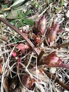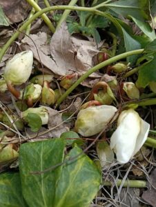 庭に地植えしているクリスマスローズのつぼみが、早くも顔をのぞかせてきました。冬の間は駐車場の雪が山積みになる場所なのですがすごい生命力です。雪の重みで葉が寝ているのかと思いきや、普段でも葉の出方は変わりません。白い花のクリスマスローズの方が早く開花しそうです。