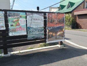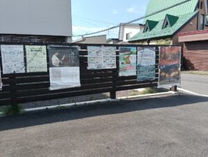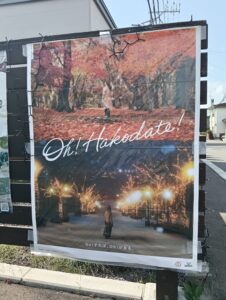 朝晩、すっかり涼しくなって秋めいてきました。塀の観光ポスターを「五稜郭・夜景」から「紅葉の香雪園・雪の八幡坂」へと貼り替えました。すぐに紅葉の時期になりますね。雨や日差しにやられて3~4ヶ月ほどしか維持できないのですが、ひっぽに欠かせないポスター掲示板になっています。