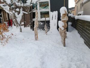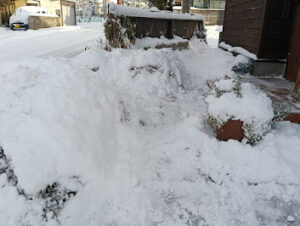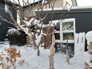 4日から夜遅くまで降り続いた雪は、20センチほどの積雪になり一面の冬景色になりました。この時期らしく下の積雪が解けていて重たい雪になっていました。今シーズン初めて除雪機も出動しました。今週末の暖気と雨でかなり雪は消えそうです。こんな繰り返しで正月になりそうですね。
