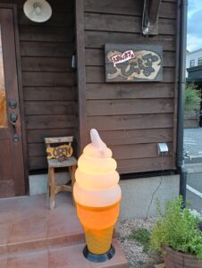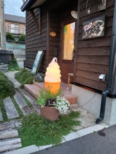 日没が早くなってきました。今日の日没は5時37分、23日は秋分の日なのですからうなずけます。営業中にソフトクリームの行灯を点灯するのも間もなくなのでテスト点灯してみました。ついでにSTUDIOの外灯も。どっちも、LEDなので長持ちしてくれるのが助かります。だんだん秋めいてきますね。