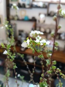 今週のカウンターの花は「雪やなぎ」です。一つの花に五枚の白い花びらがあって、桜のお友達のような佇まいです。一つの花はとても小さくて控えめな感じがします。枝の先から花が咲き始めて、どんどん下のほうへ咲いていくようです。咲き終わると葉が伸びて葉桜のようになってほしいですね。
