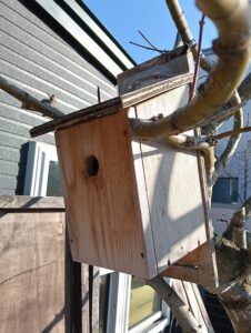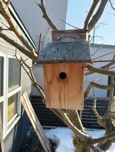 STUDIOひっぽにシジュウカラ専用の巣箱のご注文をいただきました。約15センチの四角柱の上を斜めにカットして屋根を蝶番で取り付けます。正面の板だけは鳥が留まり易いように柔らかい一枚板を使います。穴は直径28ミリ、これより大きいとスズメや他の野鳥が入ってしまいます。突貫工事で取り組みます。